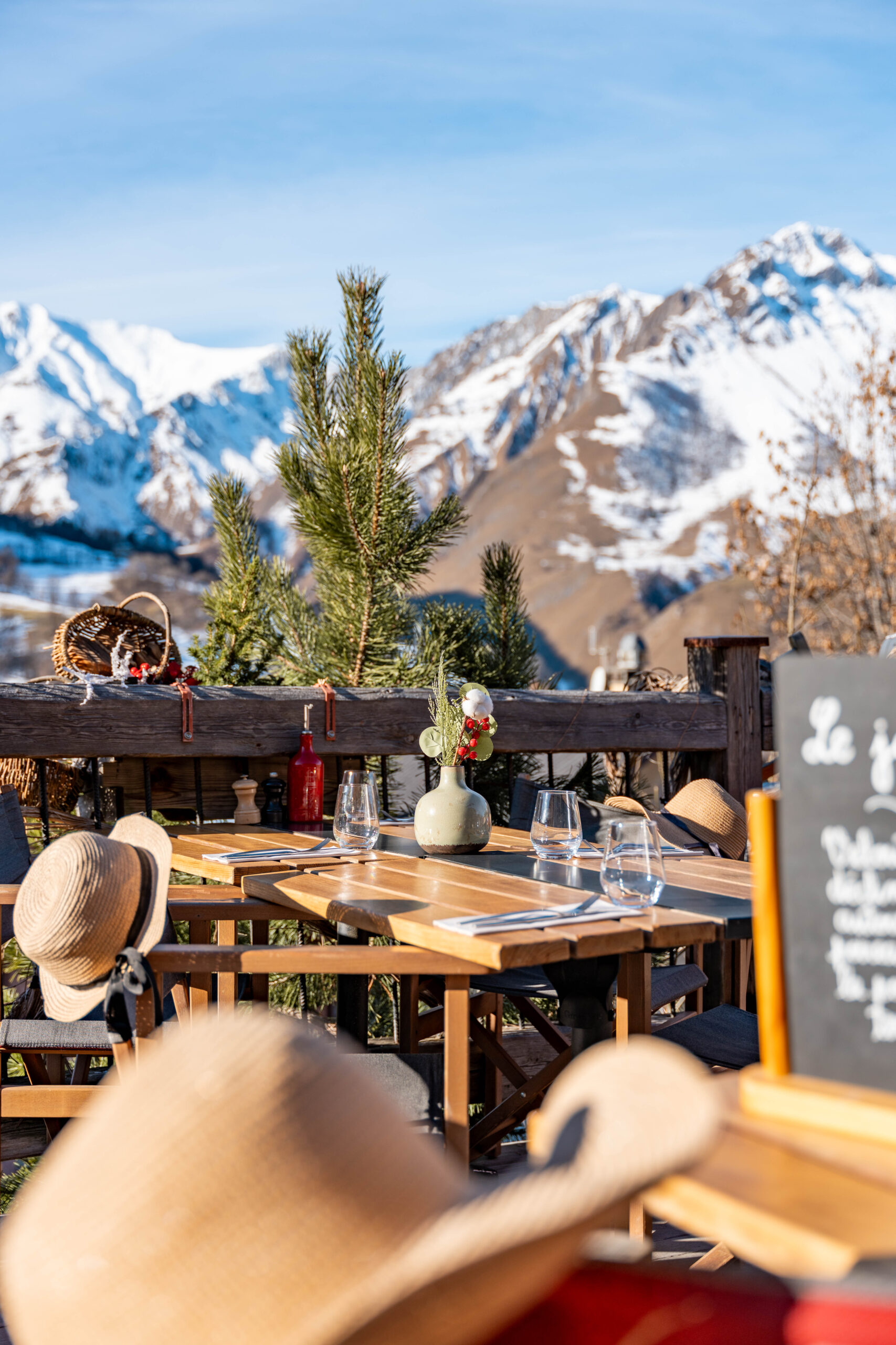 To discover the history of a valley, of a family, the love of products and the conviviality of the place, nothing beats a foretaste in pictures ... We make every effort to ensure a quality welcoming and a unique tasting experience at all times. We have a large sunny terrace facing the Cochet mountain, the Peclet summit and the Masse summit, emblematic peaks of the Belleville valley, in the 3 Vallees ski area. Inside the restaurant, our dining room is tastefully decorated combining traditional style of a mountain stable and contemporary materials, fabrics and tableware.